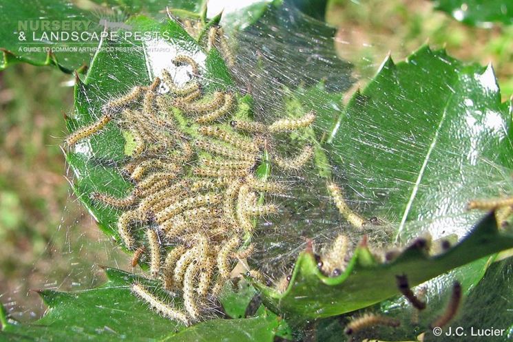 È bene sapere che durante i suoi attacchi, il bruco americano non si presenta in una sola forma ma in quattro stadi principali. Le uova sono di colore verde e sono deposte dagli esemplari adulti in gruppetti e nella parte sottostante del fogliame. La larva presenta una colorazione tipicamente gialla e marrone, con la testa nera, il dorso grigio e tutto il corpo ricoperto da una lunga peluria grigia e nera. Quando la larva arriva alla maturazione, le sue dimensioni sono di circa 30/35 centimetri. Al bruco fa seguito la crisalide dal colore marrone lucente, con la parte finale dotata di spine. L’esemplare adulto invece è una sorta di farfalla bianca con dei puntini neri, ha delle antenne molto fini e la sua apertura alare può arrivare a massimo 30 millimetri.