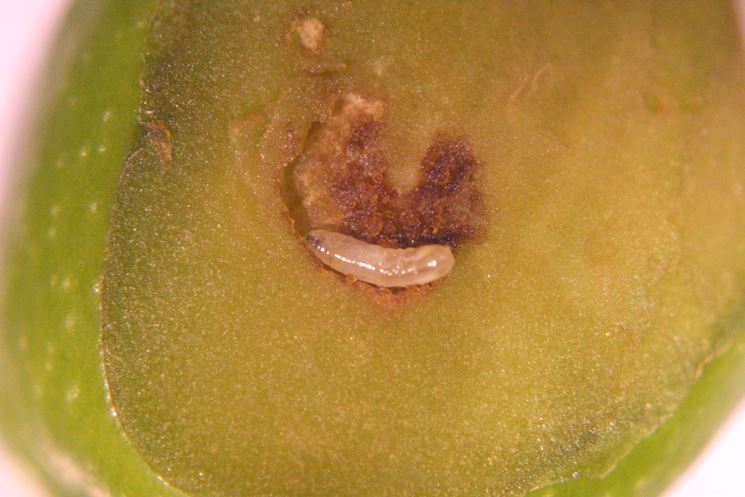 La larva subisce due mute all'interno dell'oliva. In prossimità della terza muta si avvicina alla buccia e rode la polpa, lasciando un sottilissimo strato che romperà quando è pronta ad uscire. In questa fase l'oliva dà chiari segni della sua sofferenza e della presenza della larva, diventando scura. La larva buca l'oliva e si lascia cadere al suolo, dove avviene l'impupamento, e cioè l'ultima fase dello sviluppo, che vedrà uscire l'insetto adulto.Un ciclo completo, da larva a mosca, dura in media 3 settimane e in una stagione si possono avere anche 6 - 7 generazioni.Quando un uliveto è attaccato da questo parassita in tarda estate o in autunno, i danni sono maggiori perché il prodotto sarà più scarso, il gusto più acido e l'aroma rovinato dall'odore di muffa.La necessità della mosca di nutrirsi di proteine viene studiata e valutata, al fine di trovare rimedi validi per combatterla.