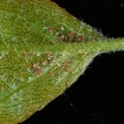 L’infezione da ragnetto rosso si manifesta principalmente sulle foglie, che si decolorano improvvisamente sul margine superiore assumendo una colorazione simile a quella del bronzo. Questo stadio porta al loro disseccamento e alla conseguente caduta precoce. Sul margine inferiore si può assistere alla necrosi del tessuto vegetale o alla comparsa di macchioline biancastre pulverulente dovute ai residui e agli escrementi della larve, segno dell’avvenuta colonizzazione da parte dell’acaro. Su alcune piante, l’infestazione si concentra si bordi del margine fogliare, che appare come se fosse bruciato. Nel pomodoro, ad esempio, la bruciatura delle foglie ad opera del ragnetto rosso, provoca l’ustione delle bacche, poichè i raggi solari, senza la protezione fogliare, penetrano più facilmente nei frutti.