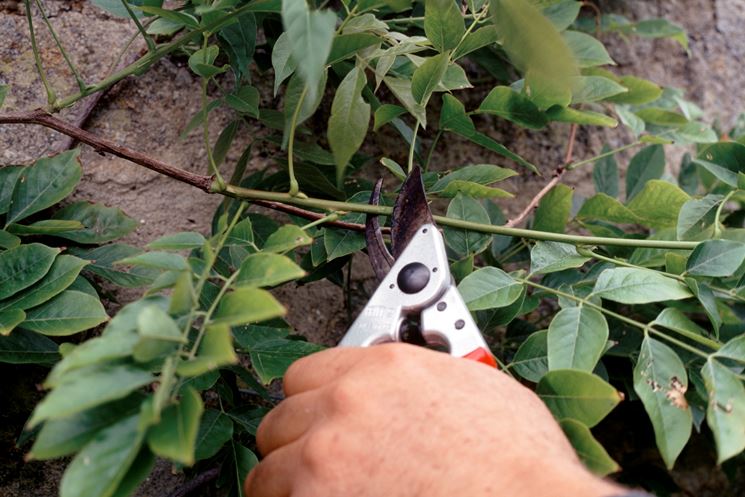 Il glicine ha bisogno di due specifici interventi di potatura: estiva ed invernale. La prima, da praticare tra luglio ed agosto, serve a stimolare la fioritura e a dare alla pianta un aspetto più ordinato. In questa potatura vanno tagliati i rami di un anno dandogli la lunghezza massima di un metro. Se si vogliono produrre dei piccoli rametti( branche) su un ramo più grande, bisogna lasciarne intatto almeno uno, cioè non bisogna potarlo ( accorciarlo). Durante questa operazione è meglio togliere anche i polloni e gli stoloni ( grossi rami) che si formano alla base. Queste parti tolgono energia alla pianta e le danno una forma asimmetrica o troppo disordinata. Se il glicine nasce da un innesto, i polloni basali saranno molto grossi e vigorosi, poiché trattasi di rami selvatici. La potatura invernale si effettua dopo la caduta delle foglie. Se il clima è troppo rigido, è meglio aspettare la fine della stagione fredda. In questa potatura si accorciano tutti i rami di un anno, lasciando almeno quattro o cinque gemme. Nel frattempo si devono anche eliminare i polloni basali, che rovinano la linea della pianta, e i rami rotti, secchi o danneggiati. Se alla pianta si vuole dare una forma ben precisa conviene scegliere un ramo adatto, non tagliarlo e legarlo in una direzione che permette di ottenere la forma desiderata. La potatura del glicine, sia estiva che invernale, consente di avere delle stupende fioriture e di contenere quella vigoria vegetativa che tende a danneggiare la forma della pianta.