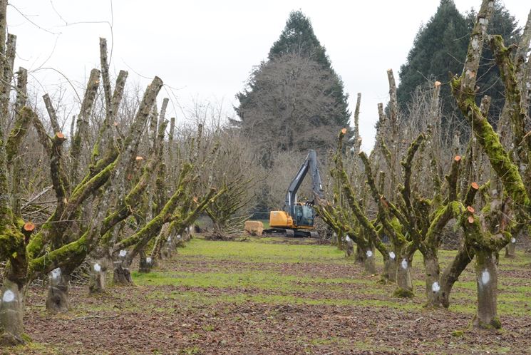 Il nocciolo è una pianta che dopo qualche anno, invecchiando, non produce più frutti. È necessario prevedere delle periodiche sostituzioni con polloni più giovani. Questo tipo di intervento va messo in atto già dal quinto anno dall'impianto e le sostituzioni vanno fatte ogni tre anni. Il rimpiazzo deve essere fatto gradualmente, solo così si potrà avere una produzione continua e cospicua nel tempo. È un processo di rinnovamento che solo con una buona tecnica di potatura è possibile attuare senza traumi per la pianta. Si può effettuare anche una potatura in fase vegetativa, all'inizio della primavera quando si sviluppa l'apparato fogliare e le gemme fruttifere si schiudono, lo scopo principale è quello di favorire la circolazione dell'aria all'interno della chioma, ma è anche utile per favorire l'impollinazione.