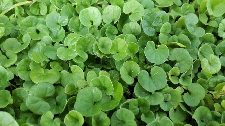 La dichondra, nome botanico Dichondra Repens, è un’erba perenne e tappezzante usata anche per la creazione di tappeti erbosi ornamentali. Le sue caratteristiche sono simili alle graminacee macroterne, cioè a quelle erbe che resistono alle alte temperature e che soffrono con quelle più rigide e fredde. La dichondra, a differenza di alcune varietà di erbe graminacee, è un’erba molto delicata e non adatta a un intenso calpestamento. Produce, infatti, stupende foglioline a forma di cuore. Per la sua delicatezza, quest’erba tende a piegarsi dopo i primi calpestamenti ed è per tale motivo che viene preferita solo per realizzare prati decorativi od ornamentali. Il prato di dichondra si può seminare in zone dal clima mediterraneo caratterizzate da temperature invernali piuttosto miti o sopportabili.