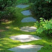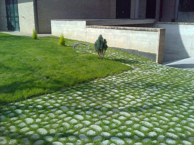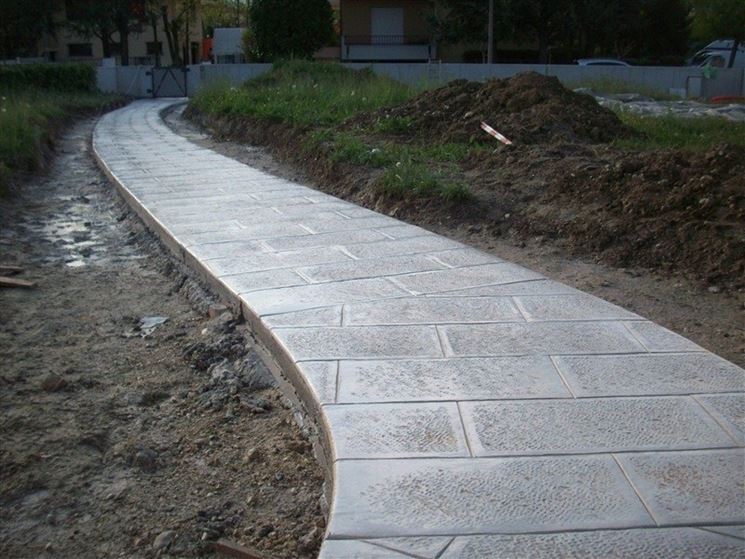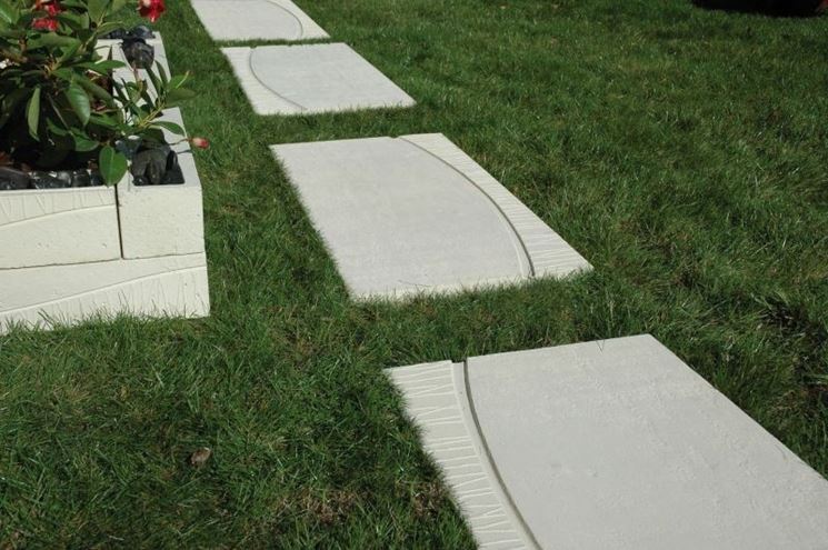 Il vialetto per giardino gettato in opera può essere munito di scanalature per conferirgli l'aspetto di una pavimentazione in pietra, benché in questo caso sia preferibile porre in opera lastre prefabbricate, di pietra naturale o artificiale. Le lastre saranno posate, ad una ad una, a poco più di 60 centimetri di distanza, cioè le dimensioni del passo di un uomo di altezza normale. L'effetto delle lastre non è quello di un vero e proprio viale, tuttavia in molti casi rappresentano, per la loro semplicità di posa in opera, per le forme ed i colori più diversificati, una valida alternativa alla pavimentazione in calcestruzzo gettato in opera, purché non siano concepite per sostenere i carichi delle autovetture.La loro posa in opera è alla portata di tutti; è sufficiente eseguire un piccolo scavo di terreno dentro il quale, previo allettamento di malta, sarà collocata la lastra.