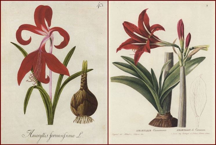 L'amarillide è una pianta che proviene dal Sud Africa, e che probabilmente fu importata in Europa già nel XVI secolo, per quanto non vi siano testimonianze certe. L'amarillide si caratterizza per la sua natura bulbosa: il bulbo si presenta tondeggiante e di colore marrone. Da esso si diramano delle lunghe foglie di forma lanceolata e di colore verde, e a primavera spuntano i fiori. I fiori hanno forma di tromba, e il loro colore va dal bianco, al rosa pallido, al fucsia. La pianta produce anche dei frutti, che contengono i semi, che possono essere usati per creare nuove piantine. Di amarillide esistono diverse specie, di cui la più diffusa è la belladonna. Ci sono poi moltissime cultivar, ovvero specie create in serra attraverso degli incroci, come la Brunswigia Josephinae, dedicata alla moglie di Napoleone Bonaparte, Giuseppina.