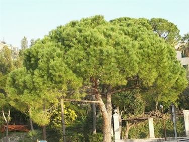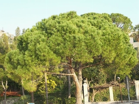L'equilibrio interno delle forze che agiscono su una pianta di pino è delicato e frutto di una serie di forze e resistenze che nel loro complesso danno alla pianta la stabilità necessaria per stare in piedi e non cadere. Intervenire con la potatura su una pianta come il pino marittimo può essere la causa di gravi scompensi negli equilibri delle forze della pianta.Il taglio di cui lei parla, ovvero la cimatura dei pini, è un trattamento che a nostro avviso dovrebbe essere vietato. I pini non hanno, a differenza delle latifoglie, la capacità di ricacciare rami dopo il taglio ed una cimatura del pino eseguita in quel modo significherebbe privare per sempre il pino della sua porzione apicale. Un intervento simile, oltre che veramente ignobile dal punto di vista estetico, è il classico taglio eseguito dai giardinieri improvvisati che non conoscono minimamente la fisiologia delle piante e la botanica in generale. Un pino capitozzato non può rigermogliare, non è previsto nel suo DNA quindi è inutile tagliarlo e poi sperare che questo germogli.Nella progettazione dei giardini si dovrebbe pensare un minimo alle conseguenze che l'inserimento di determinate specie potrebbe avere quando si mettono a dimora le piante. I pini marittimi sono piante che crescono molto e al'epoca del trapianto si sarebbe dovuti pensare alle conseguenze nel futuro della crescita di queste piante. I pini marittimi inoltre hanno un apparato radicale che si sviluppa superficialmente e che moltissime volte provoca dei danni più che seri alle infrastrutture adiacenti e per questo motivo viene da sempre sconsigliato in giardini e strade.A questo punto non le resta che tenere la pianta così com'è oppure abbatterla e sostituirla con delle specie dallo sviluppo più contenuto. Una cimatura della testa del pino marittimo porterebbe ad avere un pino dalla forma inguardabile che potrebbe anche ammalarsi a breve a causa delle aperture provocate dal taglio.