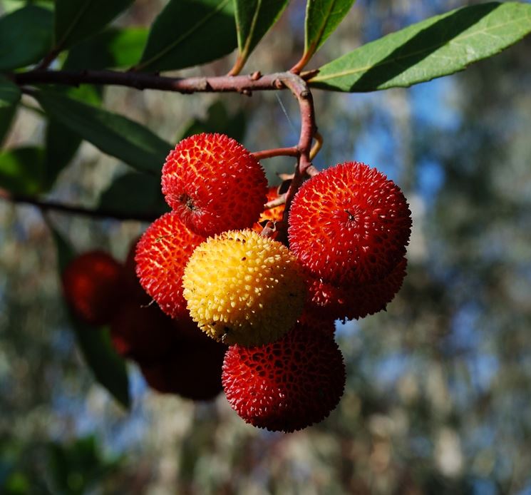 I corbezzoli sono un arbusto che non richiede molta acqua, salvo che per i soggetti coltivati in vaso. Una particolare a