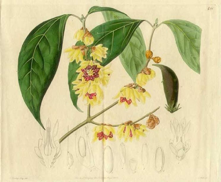 Il calicanto floridus, noto anche come calicanto della Florida, è una pianta tutto sommato ancora poco conosciuta qui da noi. Come si deduce dal nome, questa pianta di calicanto è originaria del Sud-Est degli Stati Uniti. Contrariamente alle specie originarie dell’Asia, che fioriscono durante l’inverno, il calicanto floridus ha una fioritura estiva. I suoi fiori sono particolarmente belli e dalla profumazione intensa e fruttata; per forma e colore ricordano un po’ gli anemoni (sono infatti di un bel viola scuro, con sfumature brunite) e per questo viene anche chiamato "albero degli anemoni". I suoi frutti hanno la forma di una nocciola allungata. La scorza aromatica ha un sapore speziato e viene impiegata come sostituto della cannella. I suoi semi sono invece tossici per i bovini, quindi non va piantato vicino a campi coltivati a pascolo.