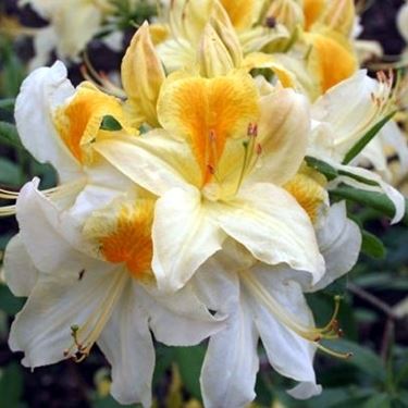 Anche il Rhododendron auriculatum è originario della Cina , è un arbusto o un albero di piccole dimensioni arrivando ad un'altezza massima di otto metri . Le foglie sono di forma oblunghe e persistenti . La fioritura avviene in estate . I fiori sono molto profumati a forma di imbuto di colore bianco e talvota risultano presenti delle sfumature rosee . Solo le piante adulte arrivano alla fioritura e sono riuniti in infiorescenze ad ombrello con massimo quindici fiori .