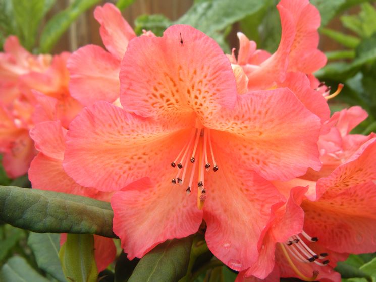 Il genere rododendro comprende circ cinquecento specie tra arbusti ed alberi sempreverdi e a foglie decidue . I rododendri sono arbusti ed alberi che possono arrivare ad un'altezza massima di venti metri con foglie persistenti con il margine intero . Esse si formano all'apice dei germogli . La fioritura è l'elemento che è davvero apprezzato per le sue proprietà decorative . Essa comincia durante periodo primaverile per terminare in estate .