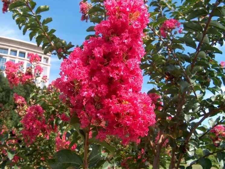 La Lagerstroemia si trova abitualmente sistemata in ambiente esterno, ma talune specie arbustive potranno trovare adeguata collocazione anche all'interno delle abitazioni, in recipienti di buona capienza. In entrambi i casi, le esigenze in buona sostanza non muteranno e la pianta dovrà essere dotata di terreno pregno di materiali organici, con presenza contemporanea di torba e elementi sabbiosi in grado di assicurare il perfetto ed efficiente drenaggio. Se ricoverata in recipiente, andrà periodicamente sottoposta ad operazioni di rinvaso, almeno ogni triennio, con utilizzo di contenitori via via sempre più grandi. Le opere di potatura, invece, non saranno particolarmente complesse, richiedendosi di base soltanto l'accorciamento oppure la periodica eliminazione dei rami vecchi e danneggiati.
