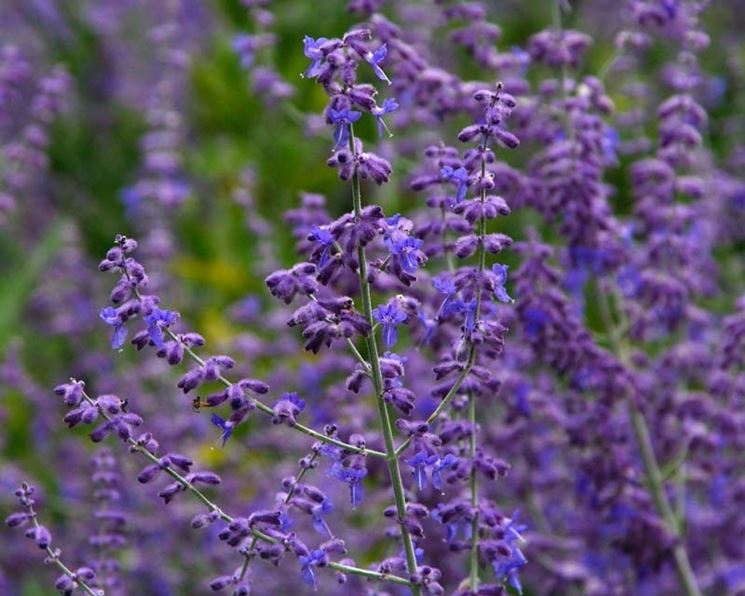 Conosciuta anche come “salvia russa” è un arbusto estremamente resistente a caldo e aridità, ma che non teme il freddo (in terreni ben drenati). Da metà estate produce ininterrottamente spighe dal blu al viola che contrastano con gli steli e il fogliame argenteo. Ideale per siepi e giardini rocciosi, in abbinamento ad essenze mediterranee (lavanda, elicriso, santolina, rosmarino, alisso).
