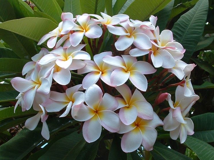 Le Plumerie sono i fiori con cui nelle isole del Pacifico si usa preparare grandi collane da regalare agli ospiti; si tr