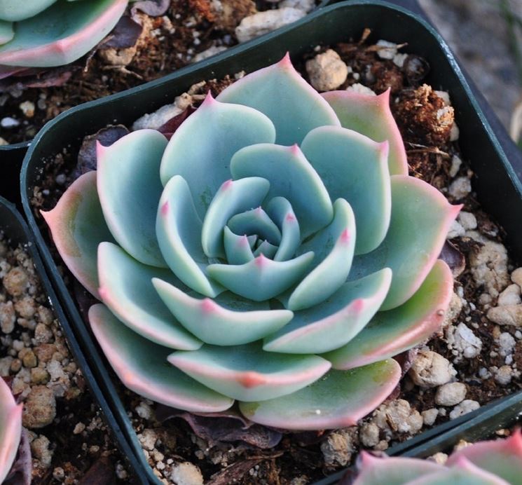 Pianta facile anche quando si tratta di riprodurla, l'echeveria può essere moltiplicata per talea di stelo, come abbiamo già visto, ma anche per talea fogliare o attraverso i semi da mettere nel terreno in primavera. Infine, anche gli stoloni che si formano accanto alla rosetta principale possono facilmente essere staccati e messi a dimora a parte. Come ogni succulenta, non vuole essere annaffiata in inverno, se non molto di rado. Se posizionata all'aperto, le bastano i periodi di pioggia.L'echevieria si trova bene in vasi tondi più larghi che profondi, sia per la forma che sviluppa fuori dal terreno, sia perché anche le radici tendono a svilupparsi in orizzontale, più che a scendere in profondità.La terracotta sarebbe preferibile alla plastica, anche se in estate si asciuga in fretta, per la necessità della pianta, e delle piante grasse in generale, di non avere ristagni intorno a sè che la porterebbero a marcire. Se il vaso è di plastica, controllare bene che si asciughi, prima di innaffiare nuovamente.Durante l'estate l'echeveria può essere nutrita con un fertilizzante liquido per piante grasse, da usare ogni tre settimane circa.