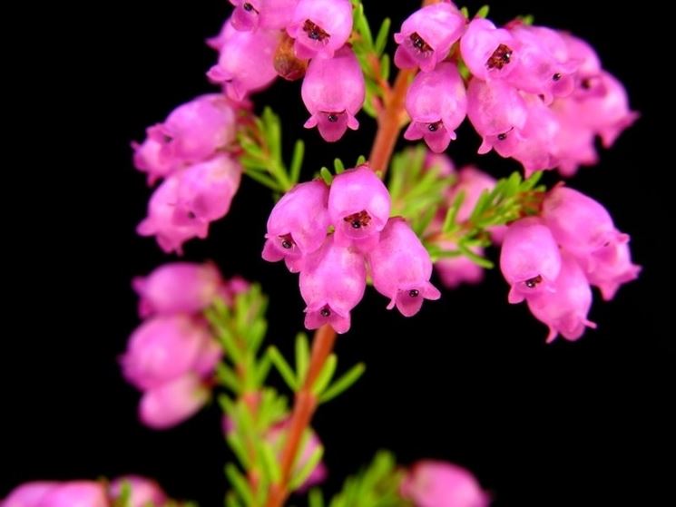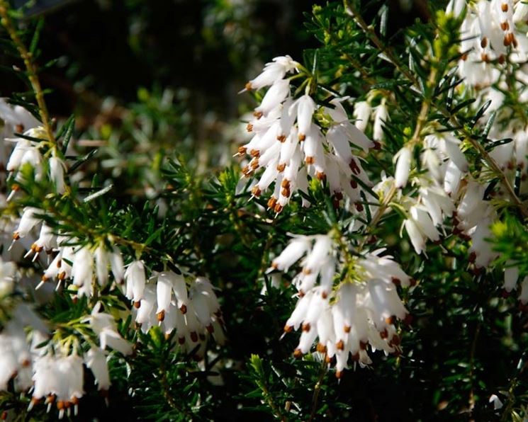 Erica Hyemalis: questa specie ha un’altezza massima di 60 centimetri, le foglie sono fini e fiori sono a forma di tubo di colore bianco sfumato di rosa. Il periodo di fioritura va da novembre a gennaio.