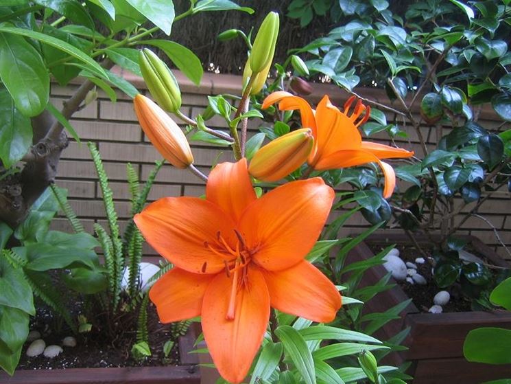Il Lilium è un fiore così grazioso che può essere accostato alle rose o agli hemerocallis che sono molto simili. Le aiuole e le bordure verranno valorizzate con l'impiego dei Lilium e di altre bulbose o piante rizomatose che in estate ci regalano una splendida fioritura. Anche vicino a delle piante rampicanti il Lilium può rendere le stesse più belle nascondendo la base che di solito si presenta antiestetica. Il vantaggio delle bulbose è quello di non disturbare la vegetazione circostante o le radici vicine di altre piante. Quasi tutte le specie di Lilium prediligono un terreno fresco e profondo, magari neutro o lievemente acido. La terra dovrà essere ricca di sostanze nutritive e quindi è bene apportare spesso un concime stagionato. Inoltre, bisogna aggiungere in estate un fertilizzante per piante fiorite da mescolare all'acqua per innaffiare ogni sette giorni e fino a quando gli steli saranno secchi. Per aiutare il bulbo è meglio apportare anche un concime a base di fosforo e potassio durante la fioritura. La concimazione aiuterà l’aumento del bulbo che produrrà delle piante vigorose e tanti bulbilli utili per la moltiplicazione.