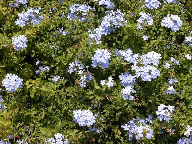 Il Plumbago capensis è più comunemente conosciuto con le denominazioni di gelsomino azzurro e plumbaggine. Questa specie