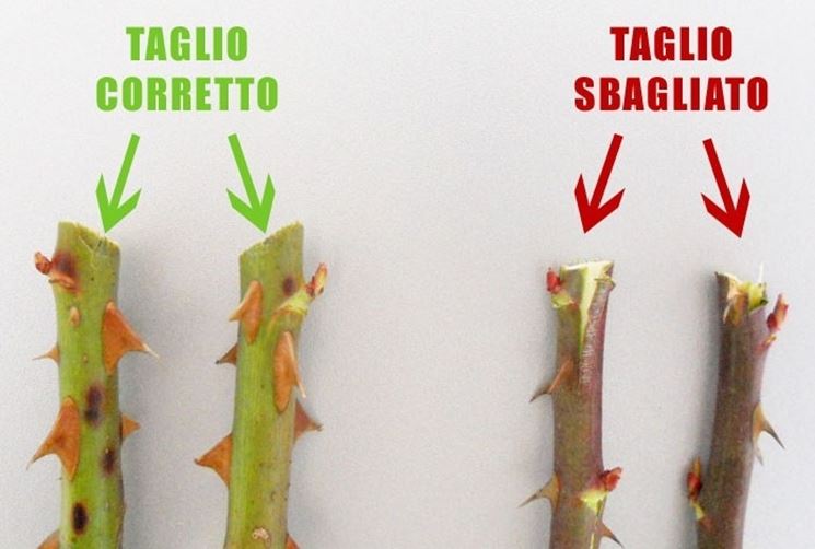 Quando si potano le rose, la modalità di effettuazione del taglio riveste un'importanza fondamentale per la buona riuscita della potatura e per l'incolumità delle piante stesse. Tagliare in modo corretto, inoltre, evita la formazione di ferite e lesioni che potrebbero favorire l'insorgenza di funghi, muffe ed altri tipi di infezioni. In questo senso, la prima regola da tenere in considerazione riguarda l'inclinazione del taglio, che deve essere eseguito in senso diagonale rispetto al suolo: in questo modo la pioggia, invece di ristagnare sulle parti della pianta appena tagliate, può scivolare direttamente sul terreno. I tagli, inoltre, non devono essere praticati troppo vicino alla gemma in modo da non compromettere la fioritura. Cesoie, forbici e segacci devono avere le lame bene affilate per garantire l'esecuzione di un taglio netto.