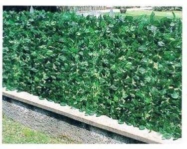 Le siepi finte possono imitare le siepi naturali, possono cioè raffigurare il fogliame e il colore delle siepi vere. Le siepi finte più vendute sono quelle di edera rampicante, di alloro, lauroceraso e photinia. In commercio si possono trovare anche siepi finte di acero, evonimo, bosso e piante fiorite. Queste siepi possono essere strutturate sempre in pannelli o a rotoli. La misura del pannello è compresa tra 50x50 cm e tra 60x 40. La misura del rotolo è invece compresa tra tre metri per uno o uno e mezzo. Queste siepi finte si possono anche usare per integrare o sostituire le siepi vere durante la fase di crescita. Le siepi a mattonella si possono anche frazionare in altre mattonelle più piccole, in genere quattro, per coprire gli spazi vuoti che possono comparire nelle siepi vere durante alcuni periodi dell’anno. Le siepi finte a mattonella si montano con delle fascette o con altri supporti a propria scelta. Molto semplice è anche il montaggio delle siepi a rotolo. Questi modelli sono adesivi e si applicano e rimuovono senza alcun attrezzo. Tutte le siepi finte sono realizzate con materiali resistenti ai raggi UV. I trattamenti subiti dalla plastica evitano, infatti, che il fogliame finto scolorisca sotto l’azione del sole. La siepe finta non richiede alcuna manutenzione, basta solo lavarla con qualche getto d’acqua per rimuovere la polvere o la sporcizia che si accumula nel corso del tempo. La siepe finta viene anche realizzata con materiali ignifughi, cioè che non prendono fuoco.