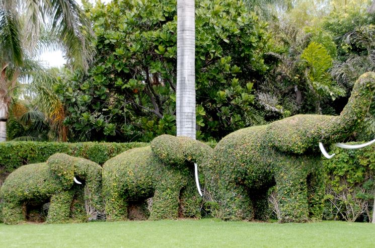L'arte topiaria consente di eseguire un taglio siepe tale da avere effetti ornamentali spettacolari. In questi casi sono utilizzate soprattutto piante a crescita folta e lenta come il bosso, il tasso, il ligustro, il lauro ed il cipresso. I rami più grossi, con ramificazioni più sottili, corrispondono agli assi fondamentali della forma desiderata. Occorre utilizzare un supporto di filo metallico a cui fissare i rami flessibili per orientare la crescita della pianta nella direzione voluta. Tale struttura potrà essere rimossa quando si sarà ottenuta la forma desiderata. Le forme di solido geometrico si tagliano con l'ausilio di corde tese o strutture in legno, che devono girare attorno alla pianta. Si tagliano così tutti i getti sporgenti per realizzare forme come parallelepipedo, sfera, cono o piramide. Le forme di fantasia come animali o oggetti vari si creano mediante una struttura in rete metallica allestita attorno alla pianta e tagliando lungo di essa, con precisione, i getti che sporgono.