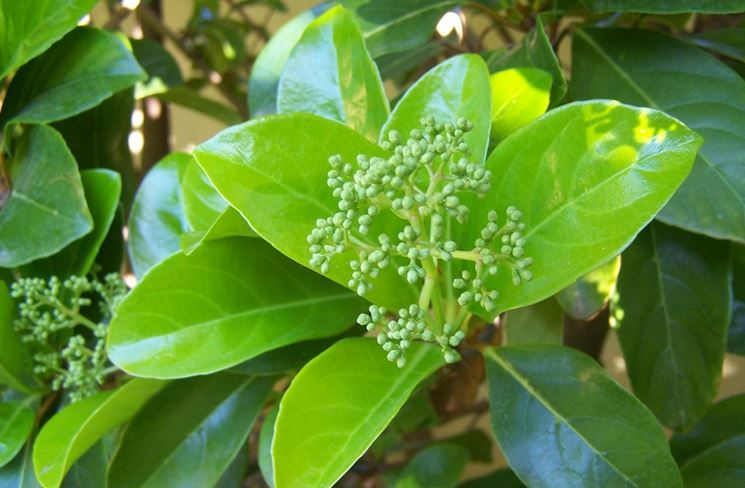 La siepe di viburno lucido si costruisce con una pianta arbustiva chiamata viburnum lucidum. La pianta cresce velocemente e raggiunge anche altezze di cinque metri. Le varietà da siepe si fermano comunque ai due metri. Il viburno lucido, come suggerisce anche il nome, presenta delle foglie verdi lucidissime e brillanti, ideali per ottenere un efficace effetto decorativo. I fiori, invece, sono bianchi e compaiono a maggio e giugno in assenza di potatura. L’infiorescenza è molto profumata e dura circa quaranta giorni.