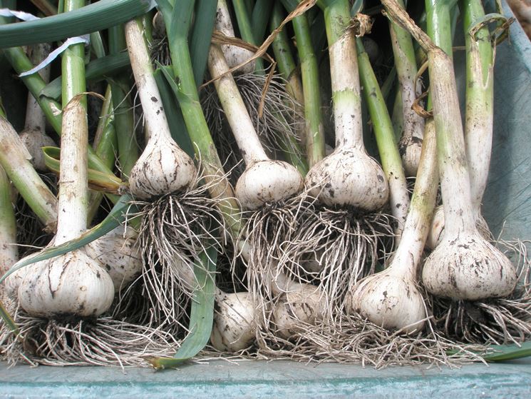 Le piante d'aglio si originano dai bulbilli, anche detti spicchi. Gli spicchi vanno separati e selezionati, cercando di seminare i migliori, così da avere piante forti e robuste. Il terreno più idoneo alla coltivazione dell'aglio è formato da terriccio leggero, universale, misto a sabbia per aumentarne il drenaggio. Gli spicchi di aglio vanno interrati a circa 3 cm di profondità e a distanza di una ventina di centimetri l'uno dall'altro, nel periodo che va da novembre a marzo. I bulbilli seminati in autunno saranno pronti da consumare freschi già in primavera.Le piante di aglio dovrebbero essere concimate solo con concimi minerali poiché quelli organici possono provocare marciumi alle radici. Una corretta concimazione si ottiene rifornendo il terreno di potassio e fosforo prima della semina dell'aglio, e somministrando azoto durante la crescita.Con l'arrivo dei primi freddi le parti aree cominciano a seccare e i bulbi possono essere estirpati per essere conservati e consumati.Se non vengono tolti dal terreno, trascorso un periodo di riposo, riprenderanno a vegetare. E' bene raccoglierli quando non si vuole avere un sovraffollamento nel terreno.
