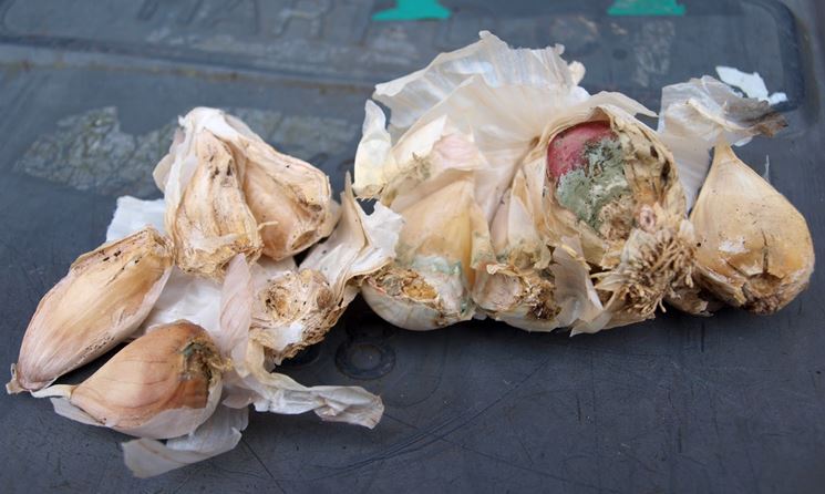 Nonostante le sue proprietà antibatteriche, l’aglio potrebbe essere colpito da alcune malattie come, ad esempio la peronospora. Questa malattia si presenta creando macchie sulle foglie e bisogna fermarla con il rame prima che arrivi ai bulbi. Un’altra malattia diffusa è la cosiddetta ruggine, si presenta sempre con macchie gialle e va contrastata con il rame. Potrebbe capitare che i bulbi marciscano a causa di funghi o dai ristagni idrici, vanno evitati entrambi controllando le irrigazioni. La muffa bianca potrebbe comparire formando una patina bianca sulle foglie. Ha un parassita rappresentato dalla mosca dell’aglio che, deposita le uova sui bulbi e le larve ne divorano la tunica esponendoli ad infezioni e malattie come la batteriosi. Questo parassita si riproduce anche tre volte l’anno.