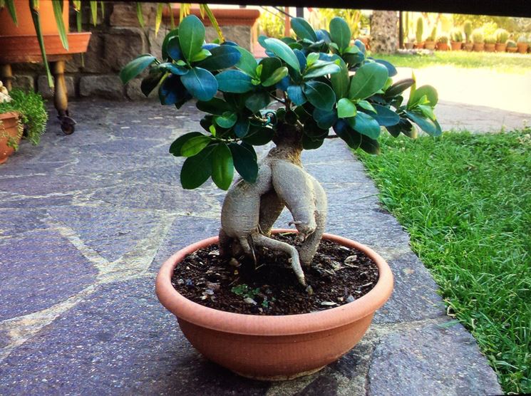 Viene chiamato ficus ginseng il Ficus retusa (o Ficus microcarpa) coltivato a bonsai, questo perché la pianta sviluppa u