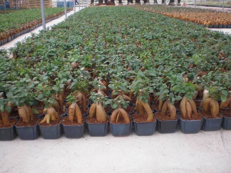 Il ficus ginseng deve il suo nome al fatto che con le sue forme è in grado di formare un gran numero di figure, tra cui vari uccelli, ma anche ginseng e così via.